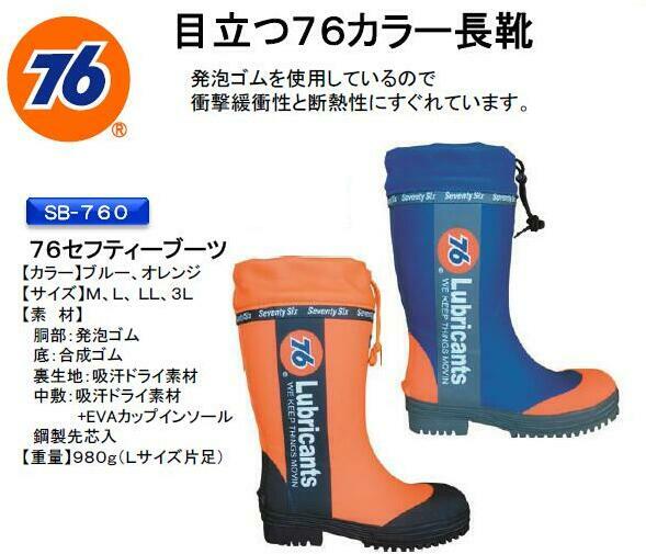 作業現場で目立つこと間違いなし! かっこいい76Lubricantsブランドの安全長靴です。 発泡ゴムを使用しているので、衝撃緩衝性と断熱性に優れています。 裏地には吸汗ドライ素材を使用、快適性を保ちます。